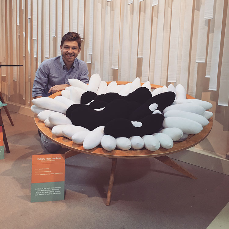 And finally the chair with varnish finishing and the rice and beans cushions at SaloneSatellite 2015