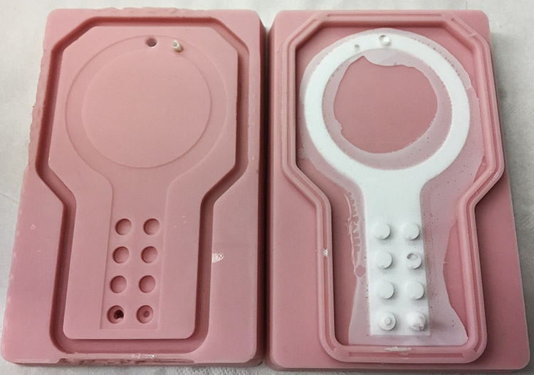 I made the both molds on SolidWorks as well, the first one is only one side, easier to design and to make. And the second one has two parts and more complex geometry, so it took more machining time.