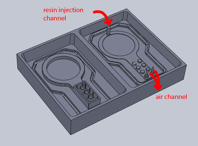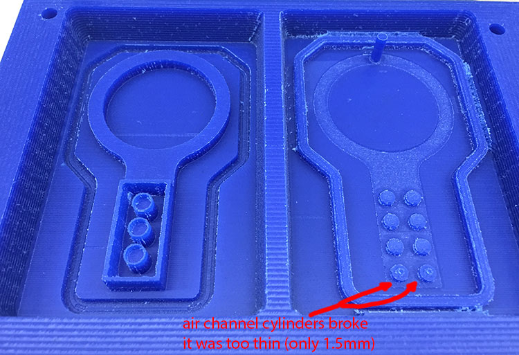 I had to do some improvements on my material injection channel, and add one more air channel next to the injection: