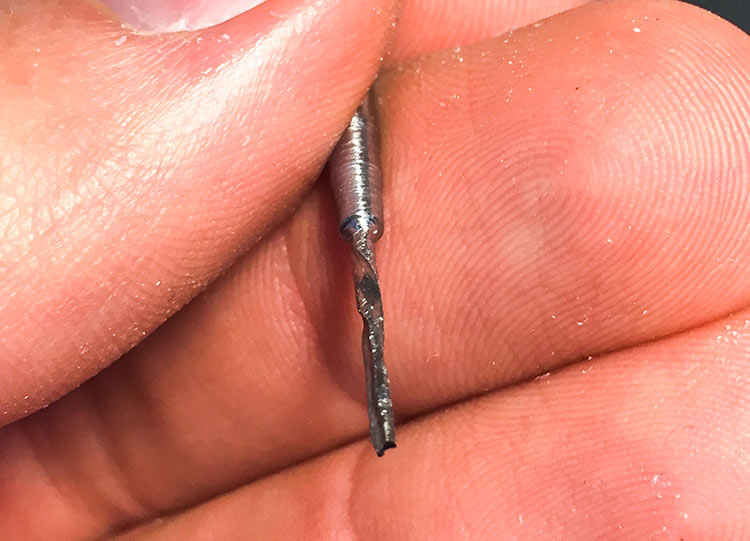 Software used:For both molds I used wax block to get a negative part from it. To mill it, first I did a rough cut with a 3mm flat milling bit, and then a finishing cut using a 1/32pol bit for the one side mold, and for the two side mold a 1.5mm (handmade) milling bit, because we didn’t have a thin bit with long neck, so I made one using a bench drill + rasp and a Dremel + cutting disc to make the fludes.