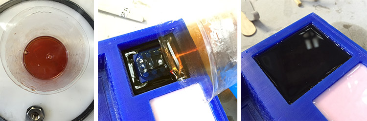 Then I made the second mold for the tripod adapter piece, but I this one doesn't work so nice, maybe I didn’t mix it enough, so the result was a stick and gelatinous consistency. And of course, the resin piece got stucked: