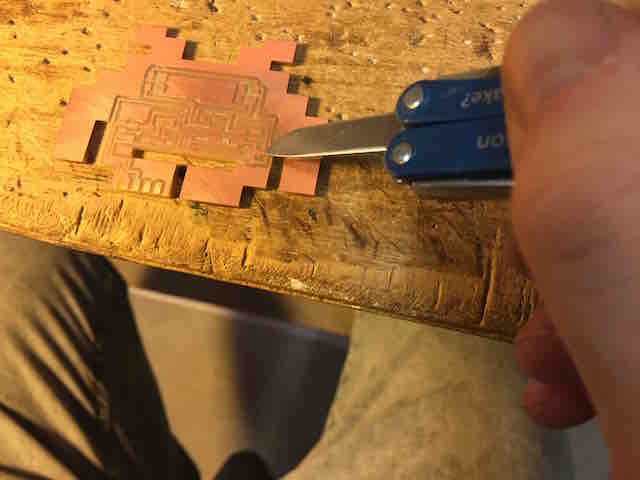 Before soldering I used my knife to get rid of some thin copper in between the traces.