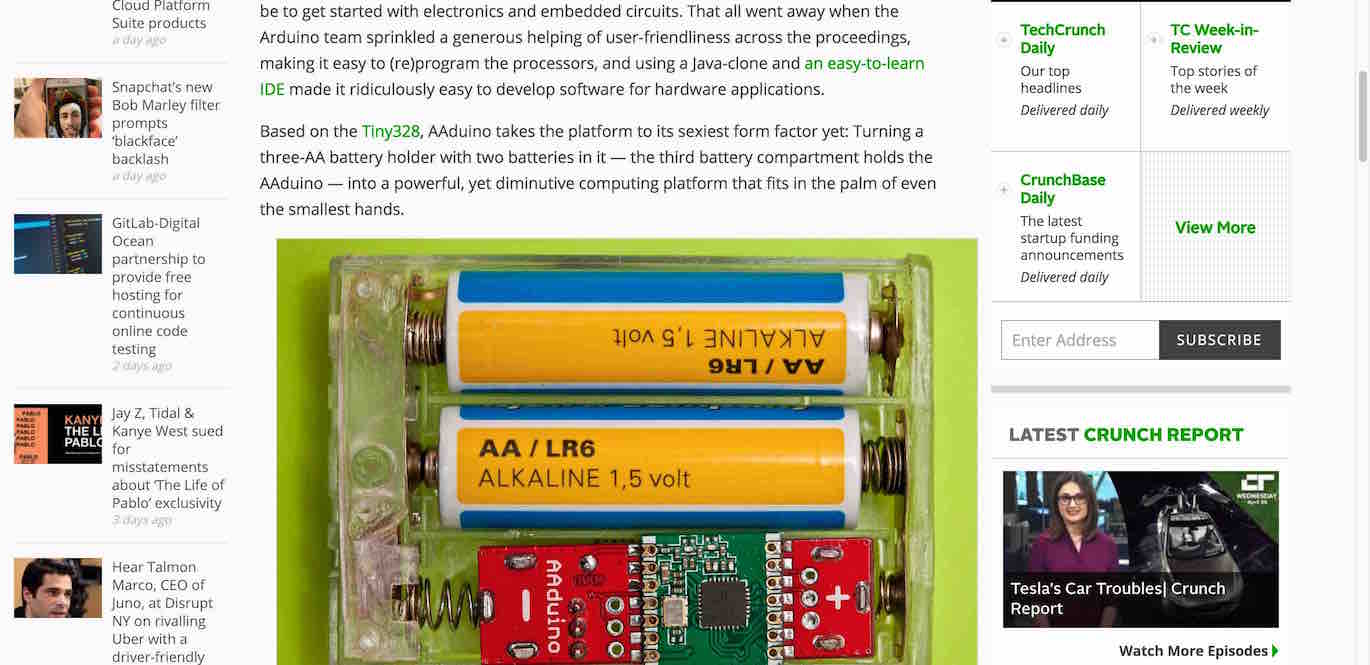 In this week I saw an article on techcrunch of an Arduino in a AA Battery case.