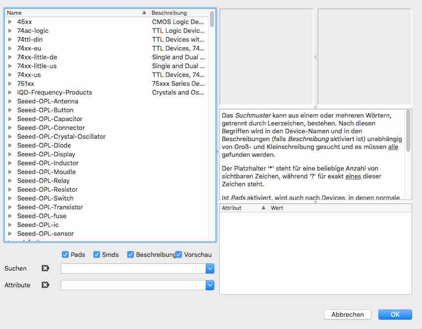 After that problem of not finding the components I did some more research into how I can set up my libraries correctly. I figured out that I have to click on the button "load all libraries". I also installed the adafruit library. This tutorial on sparkfun helped me out. And now I finally see all the libraries wenn I click on add components.