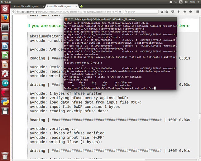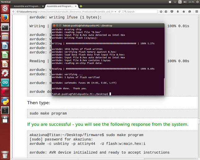 When i was almost finished soldering I remembered i needed to program my attiny as a programmer. So using AVRDUDE and an arduino I started programming