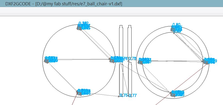 Unfortunately, our CNC router does not eat DXF directly, and it prefers to eat not GCODE *.nc but rather *.jg. One way is to use the provided software which is MASTERCAM to generate the necessary gcode, the gcode is then converted to *.jg. Alternatively, One of my coursemates Hendra introduced us to dxf2gcode