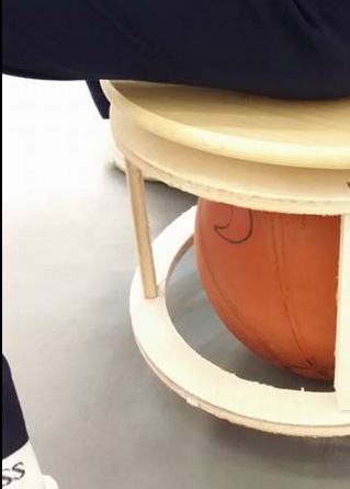 My design of the challenge chair is targeted to reduce such stigma in a class room setting. All students to be issued with the same furniture, but with the use of common class room equipment such as a basketball to disguise it the furniture for the need of ADHD student. The said challenge chair has a turn table as the sitting surface, this serves as rotation on the z axis. As for movement of the x and y axis, the said challenge chair will be prodded on a basket ball. This piece of chair is a challenge to sit on, for a regular person per se; there is not a fixed stable point while sitting on it.