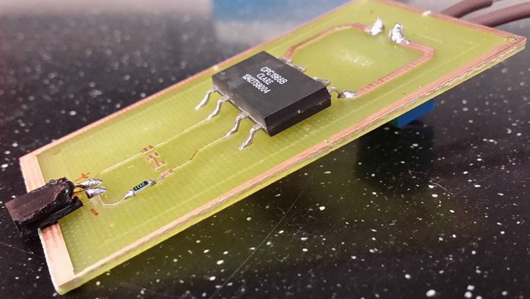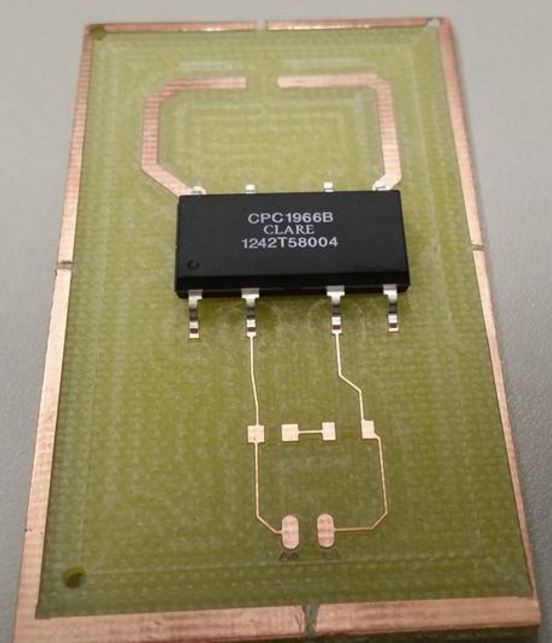 The following diagram describes the schematic and parts layout for the CPC1966B. I decided to modified the board milled earlier to save time and materials. The schematic, board, and gerber of the following diagram available here