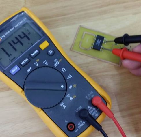 next to test whether the opto-isolating LED is operational when VCC is applied. Remember to add a current limiting resistor to the -LED pin towards GND. use digital multimeter in dc voltage mode to measure the forward biase voltage. make sure it is within the allowable range (max 1.2v) as per described in the data sheet. The following picture describes the testing.