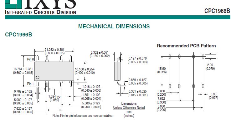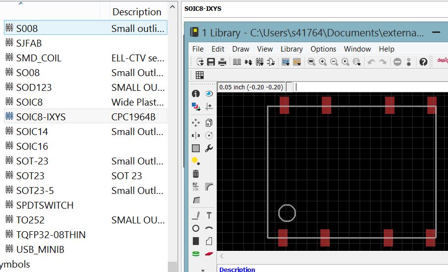 CPC1966B is SSR with Zero Crossing. Do not use conventional method such as continuity test listed in the subsection above to test for functionality of the output. As mentioned earlier, this part is not available in fab.lbr nor standard eagle parts library. I tried trawling the internet for it, but could not find any. So I have decided to create the SMD footprint for this part. The following picture describes the SMD footprint in eagle. The part is made based on the data sheet provided by the IC manufacturer. The following picture describes the mechanical specifications. I did not get to stuff my board yet, due to some lack of components. the following picture describes the dry fitting of the IC and the board fabricated.