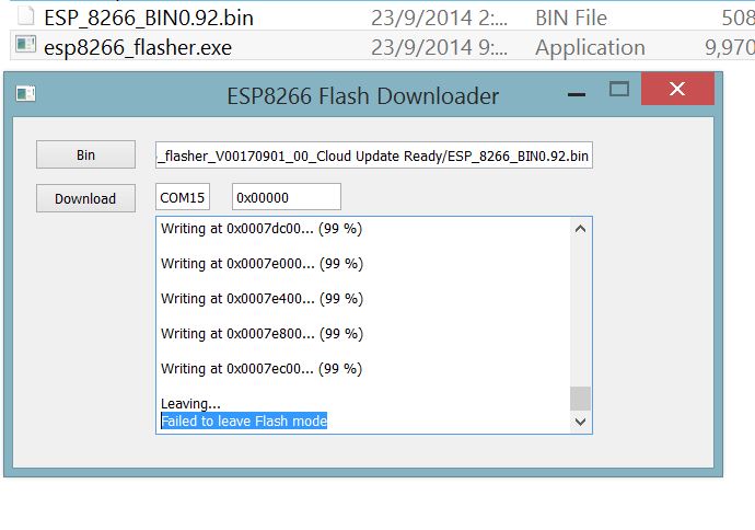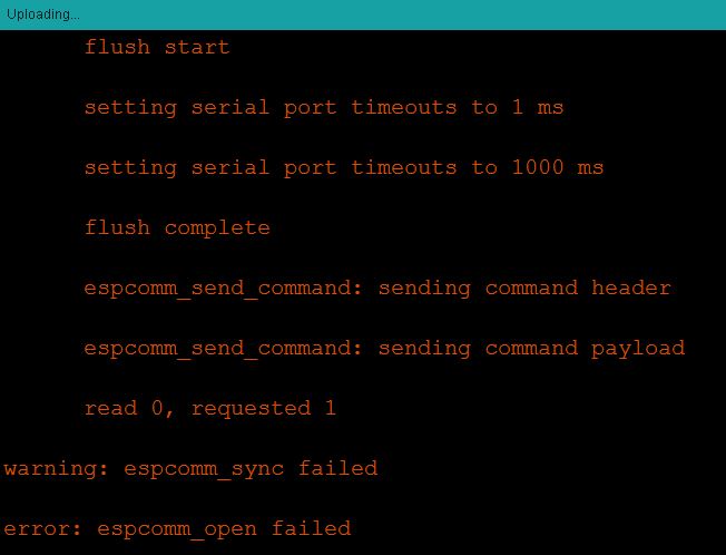 Again, I change to programming mode on the ESP8266 ESP12-E, trying to burn the firmware one more time. This time, I got a different error message, which is the same as per recorded at the input devices weekhere I call this as case0.