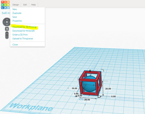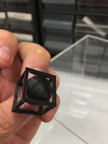 Firstly I use tinkercad to draw a simple box with 20mm, make 6 16mm holes on it then draw a ball with 18mm.