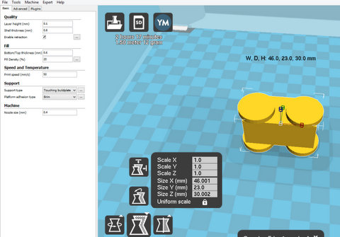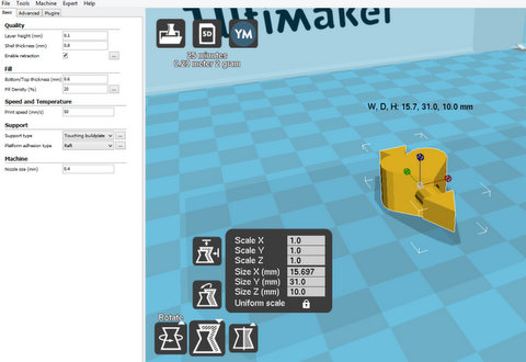 Finally I export it to a SD card and send to printer to print. The filament I use is PLA.