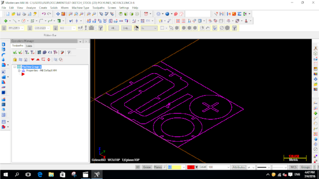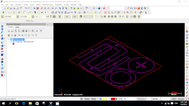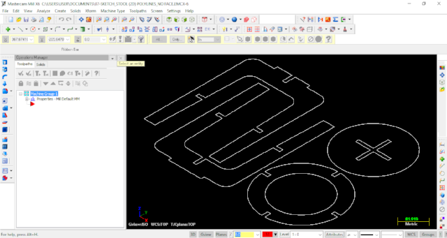 I encountered a number of problems/issues in designing and making the first version of my flatpack stool. I opted to use SketchUp to design my stool and export it to dxf using the dxf/stl plugin. What I didn't know was that SketchUp exported a 3D version of the dxf file. When this file was imported into Mastercam, there was a lot of cleaning up to do. The second problem I encountered was that the dxf file consisted of multiple short line segments, including those for the circles and curves. Again, this meant a log of clean-up was required. Rather than doing the clean-up in Mastercam, my dxf file was opened and cleaned in Autocad.