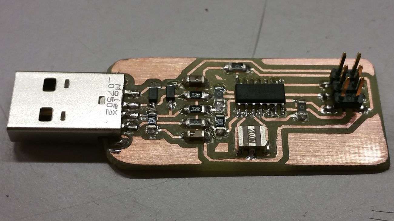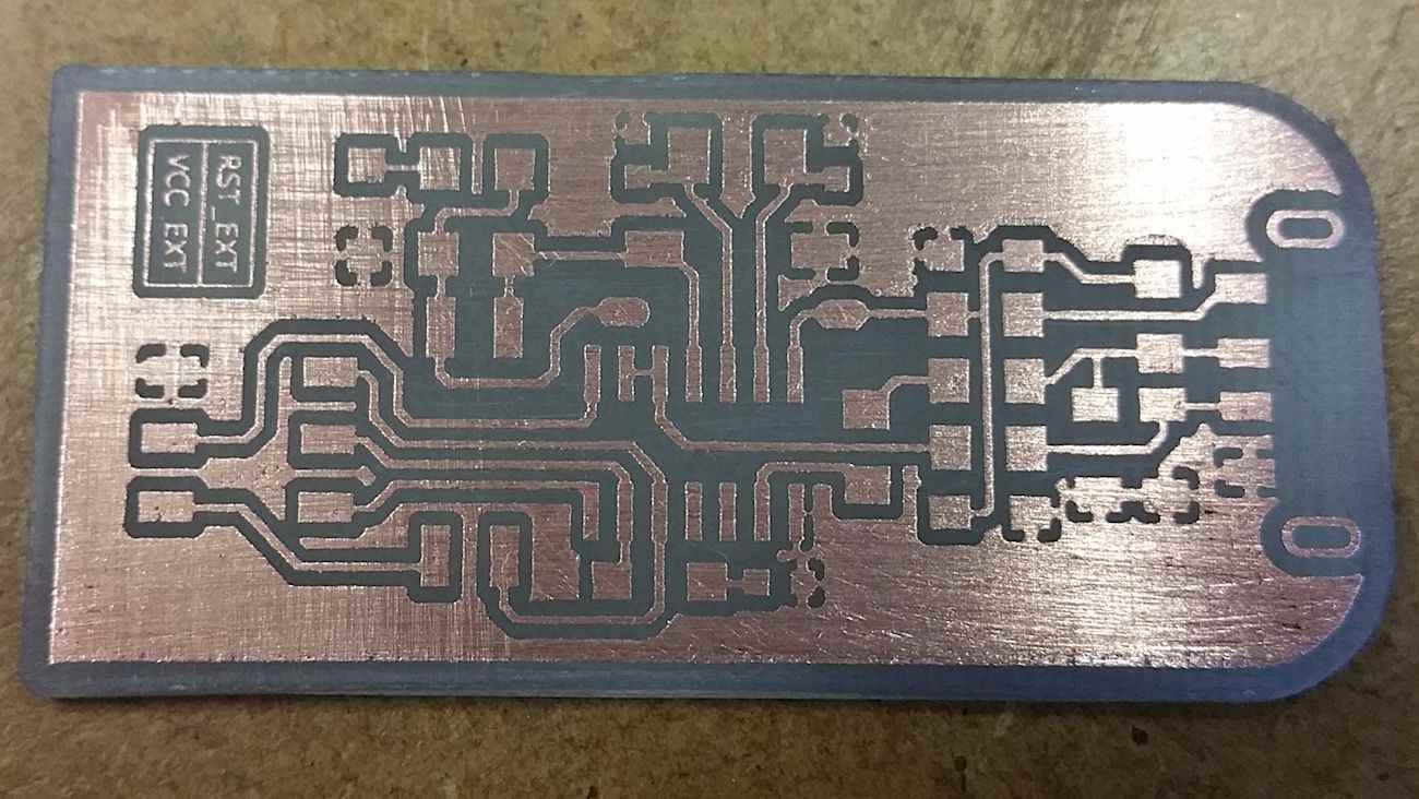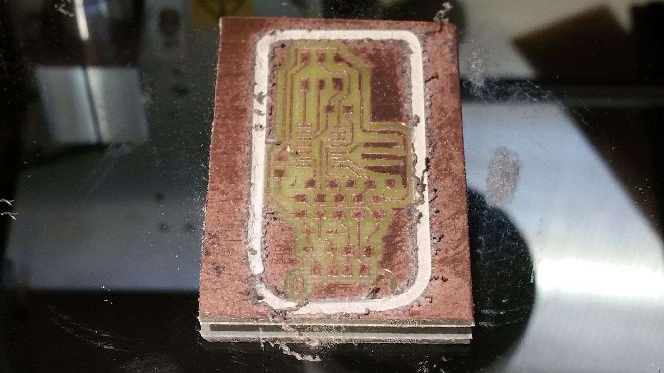 This week assigment was interesting, because I've never produced a PCB with a mill before. I'm quite skilled in PCB production but I always used toner transfer paper and chemical etching to make my boards.