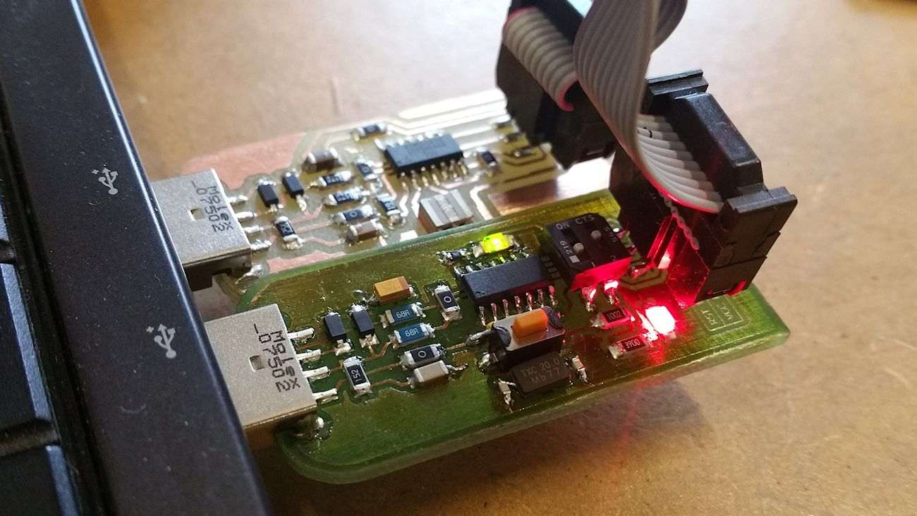 The soldering and programming went smooth for this PCB too, so I decided to try to use the new GF_FabISP_V2 to reprogram the other GF_FabISP.