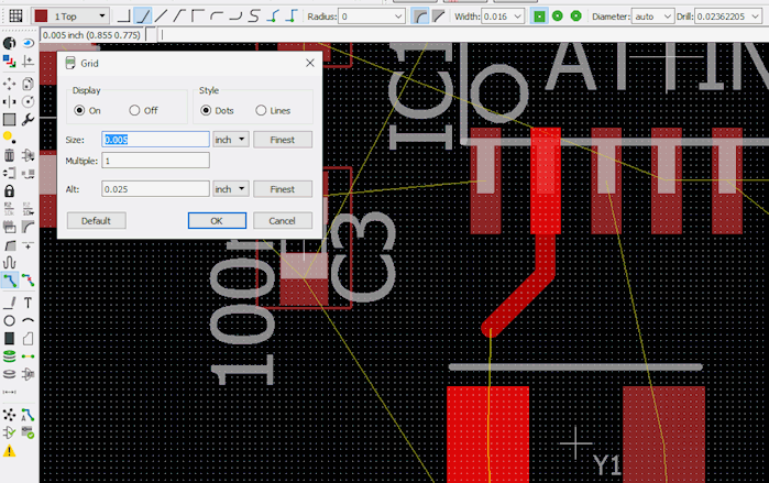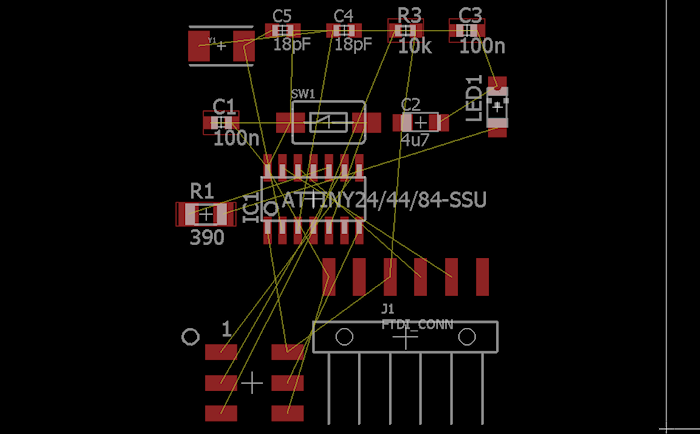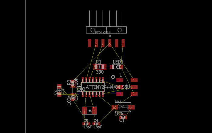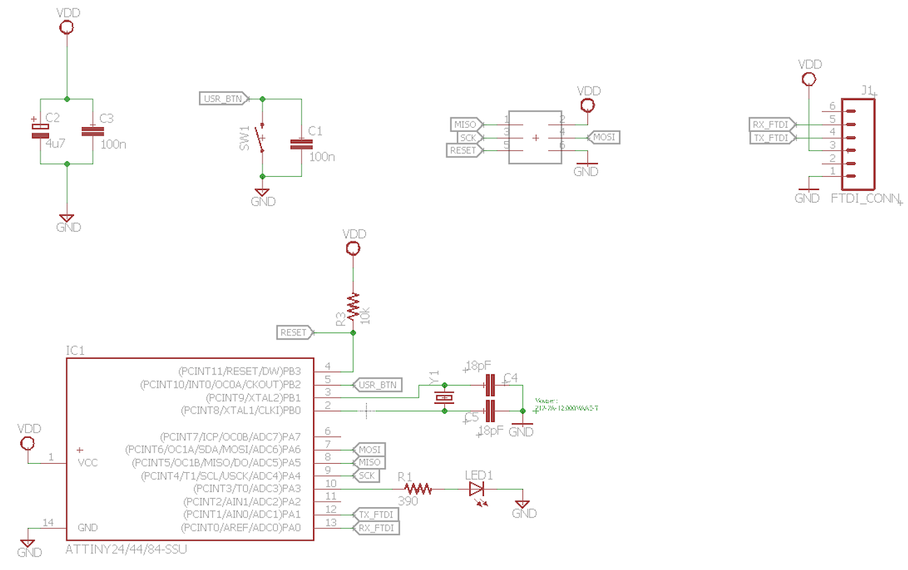 So I used Eagle to design my version of Neil's Echo Hello World, with an additional button and a led. I would like to modify the original firmware to be able to turn on and off the led using Morse code, according to the received character.