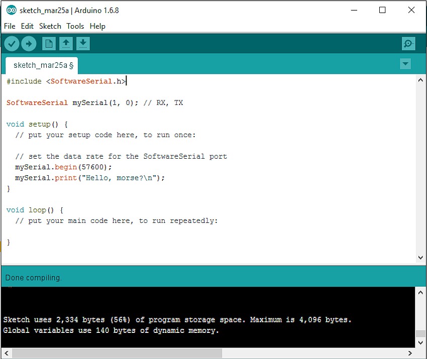 So the long answer is yes, but according to me unless you need to write a really tiny program, with no char arrays and few variables, then it's not suitable for the ATTiny microcontroller. As you can see from the image below, a simple sketch with just the initialization of the SoftwareSerial library and a print, uses up to 54% of total dynamic memory!