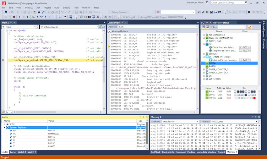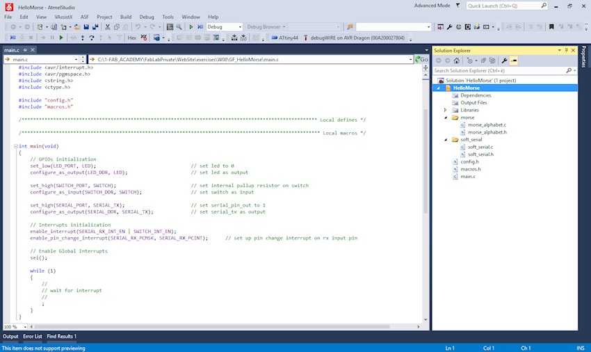 Since during Week 06 I already programmed my board using WinAVR to make my board blink in Morse Code (you can find the assignment documentation here), I decided to try the official tool from Atmel for programming and flashing their microcontrollers: Atmel Studio 7.