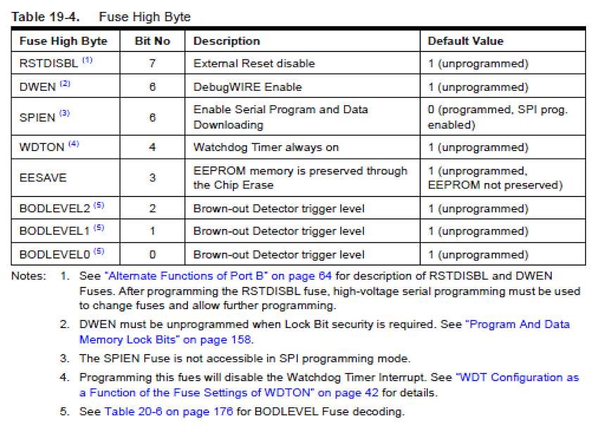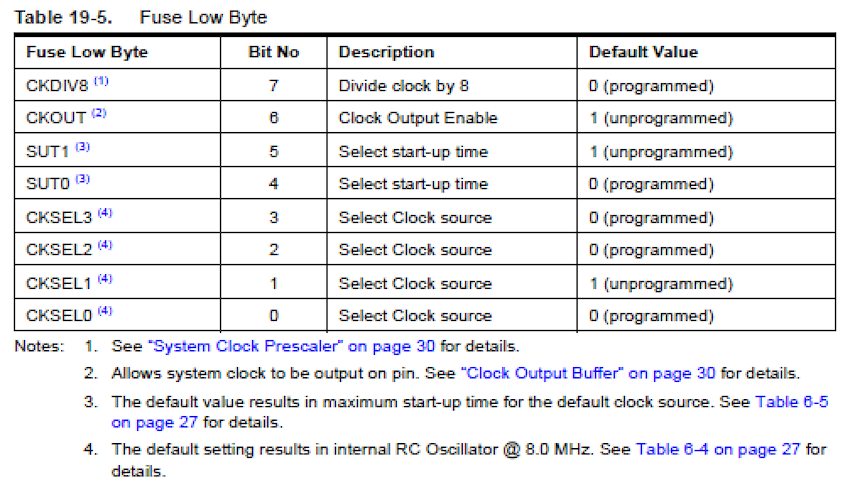 The next section I usally read is the Fuse Bytes (sect. 19.2). In there you can read the meaning of each bit, and their default value. This is extremely important when selectiong the clock source, and other functioning modes. After that, another useful section (or mainly a page) I read is the Pin Configurations (sect. 1), that lists the pinout and the functions assigned to each pin.