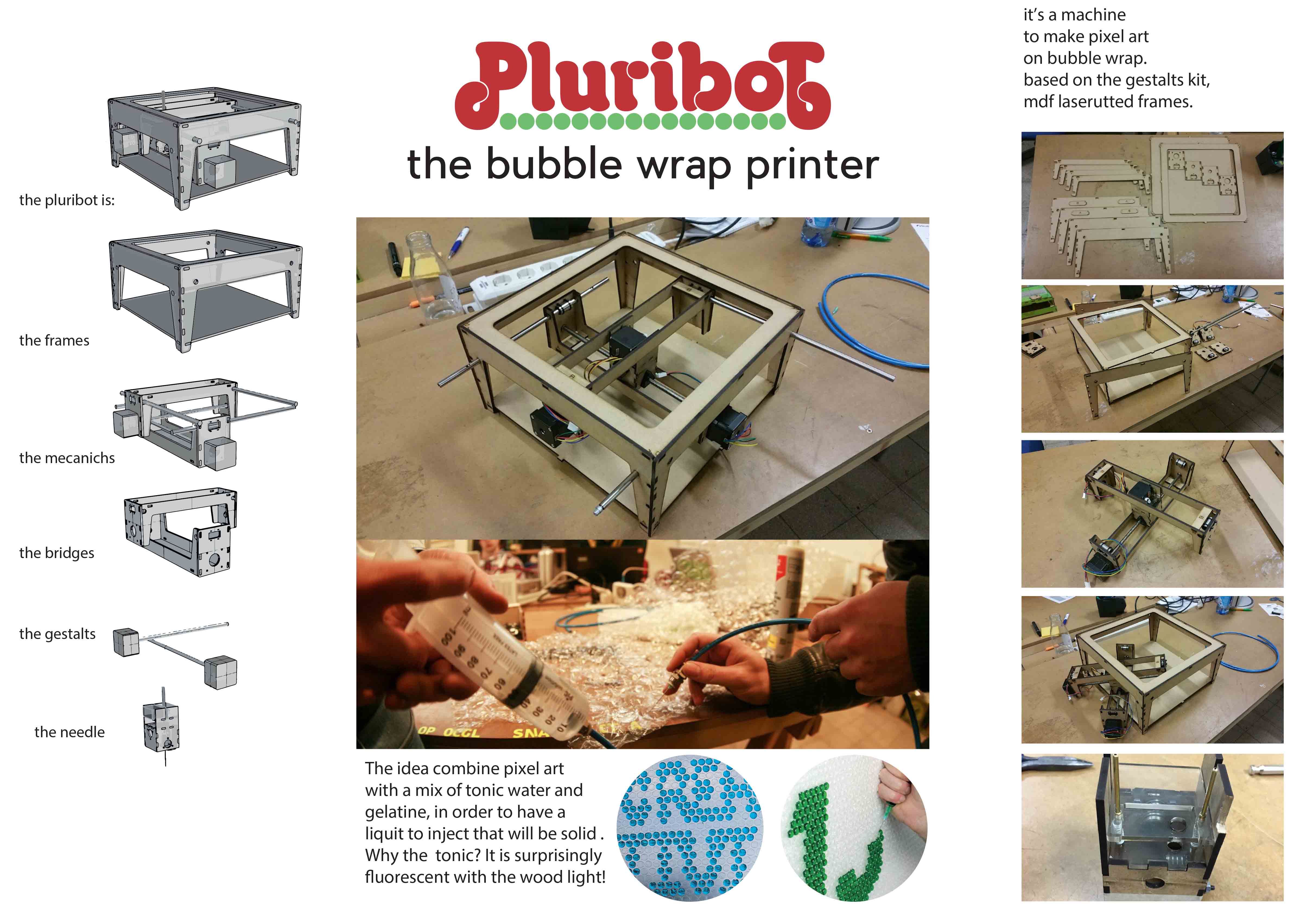 For this week's assignment, after a brief session of brainstorming, we decided to design a CNC machine to automatically fill bubble wrap with fluorescent liquid. The idea is to combine pixel art with gel tonic water, recycling used bubble wrap to make something artistic.