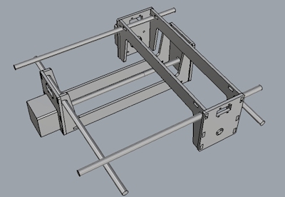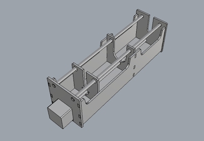 In the Work files links you can find the design file, in Rhino, with a 3D model and the whole nested panel to create the machine from scratch.