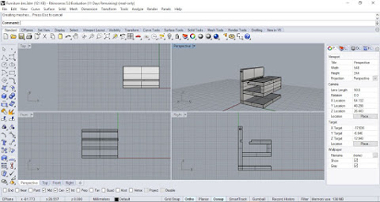 prototyping of the furniture I am planning to use Rhino, which is quite user friendly to use.