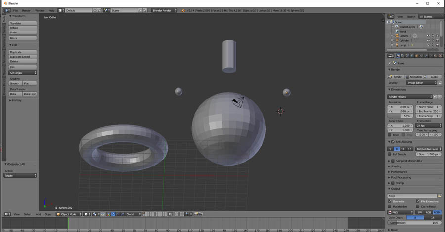 Then I start to design smiley structure. For this, I add three sphere mesh, a torus mesh, and cylinder mesh ( for getting add menu "Shift + A" )