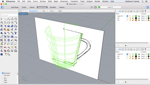 I get introduced to Rhino for the first time this week so I started to get familiar with it by following a nice tutorial from our local guru. We worked on a coffe cup in order to learn the basic functions.