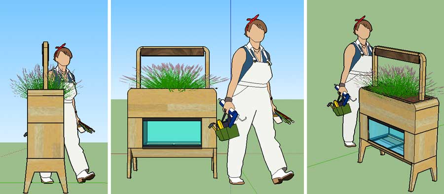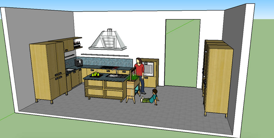 A nice feature with Sketchup is that you have access to one of the world's largest site for downloading 3D Models to fuel your creative pursuit: 3D Warehouse . So to place the aquapioneers indoor garden into a housing context, I've downloaded a kitchen model.