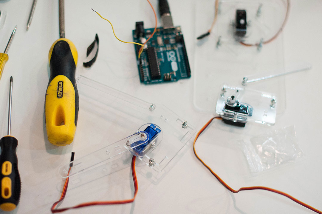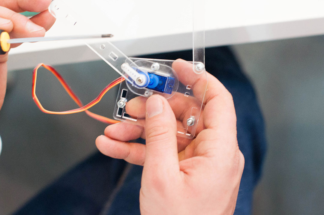On monday we found some servos in the lab and started to assemble it. It was difficult because acrylic glas in 3mm likes to split, so we lasercutted a second board just to be sure that we will have enough parts. Then we found out that a couple of the servos are broke so we needed to buy new ones.