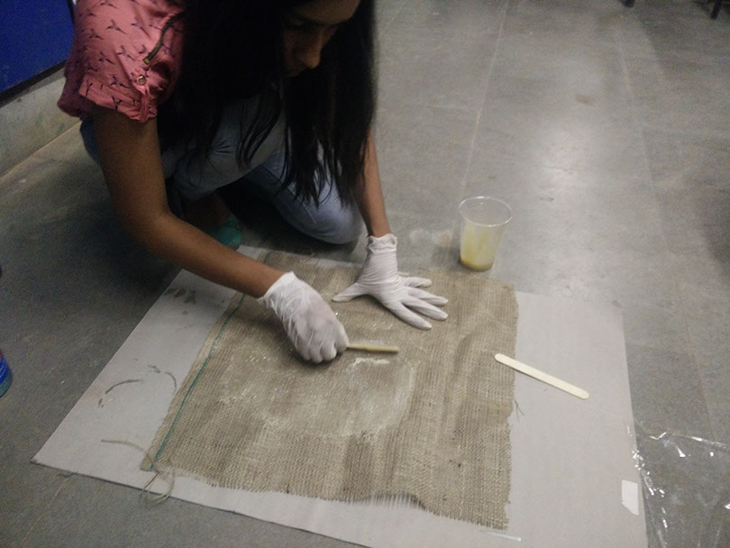 3. The next step is to apply a thin but adequate layer of this mixture on a piece of burlap. The rest the burlap piece on the CNC mold.