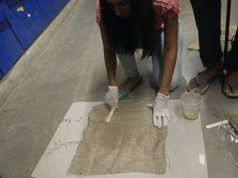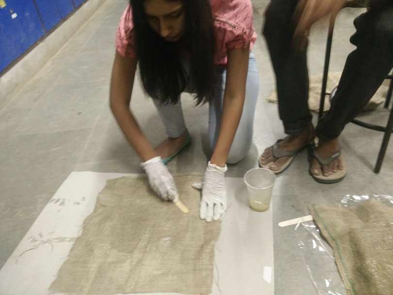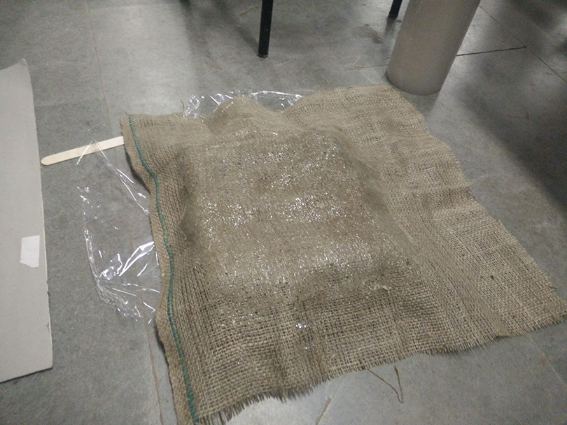 For compression process, I used vaccum bags. Again. I kept my tensile material as burlap and used Epoxy resin and Hardener.