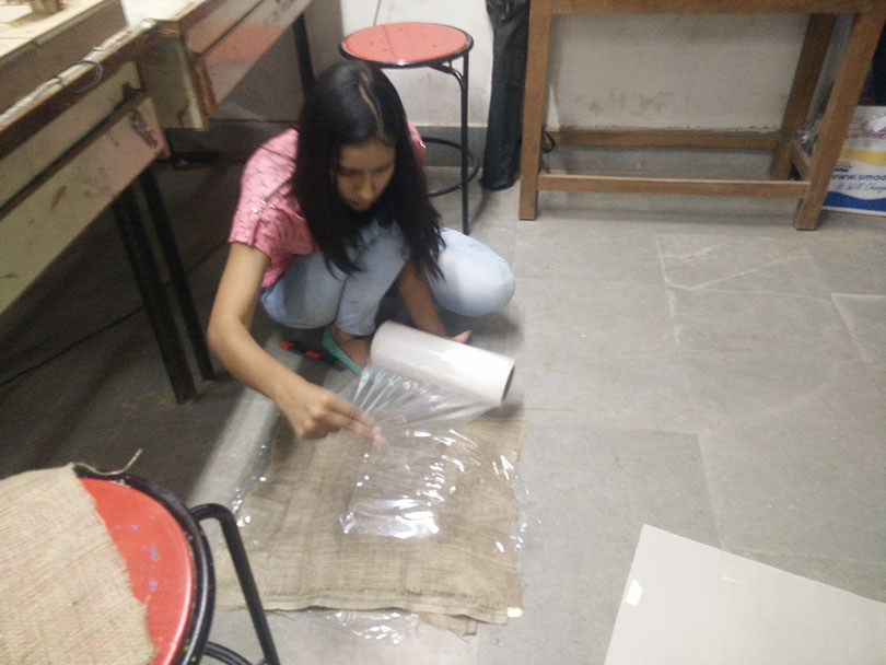 I repeated the process using 3 pieces of Burlap and then covered it with a cling wrap sheet on top of it.