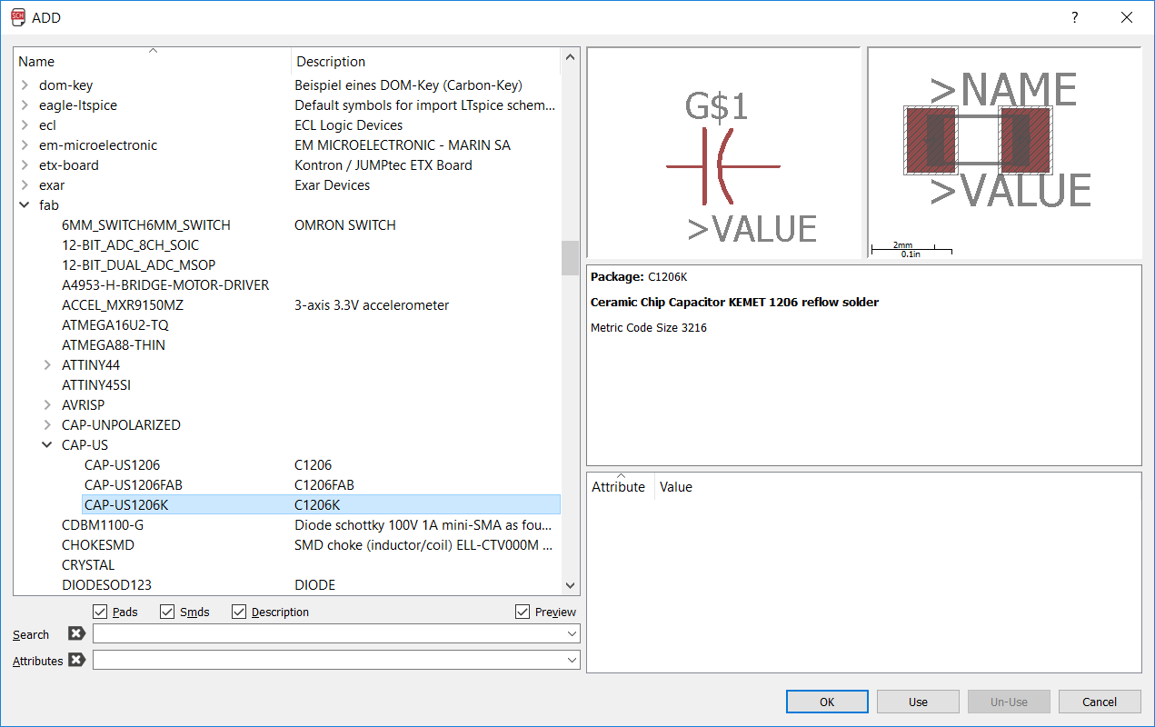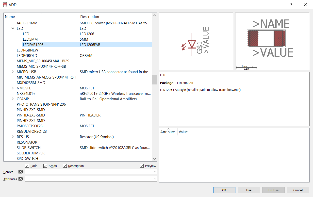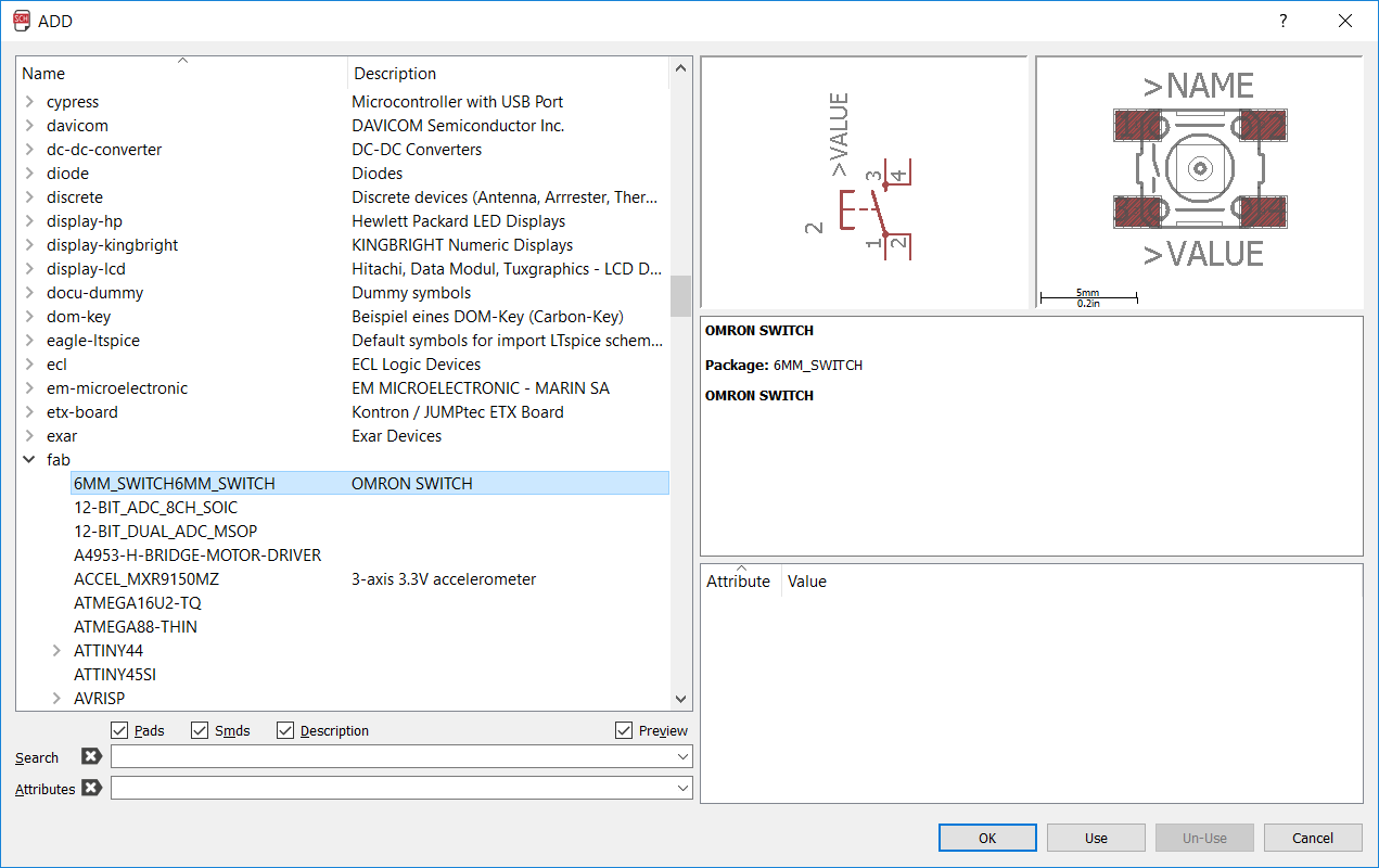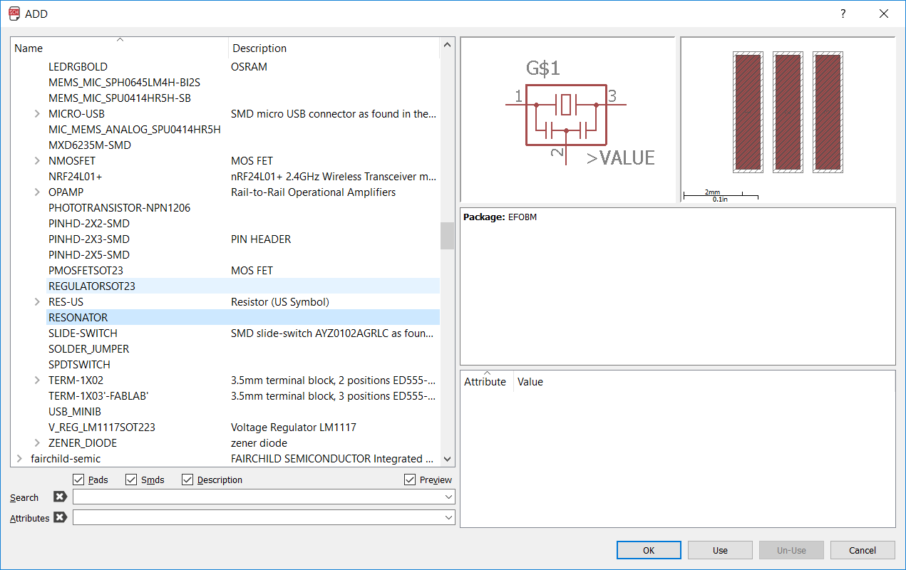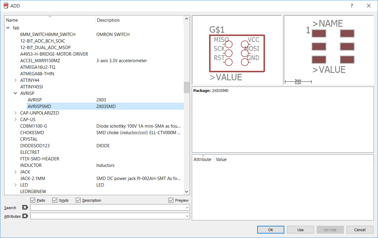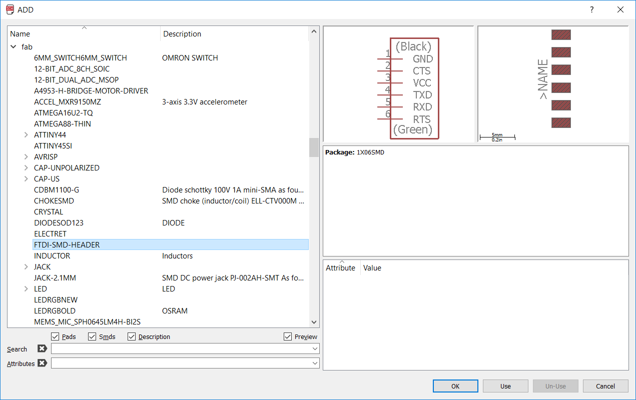 It holds all the components required for the Hello FTDI board along with majorly used components in the Fab Academy course. Another file is also needed in long run. That is called the DRU file containing the design rules about the traces and gaps. One can download it from here.