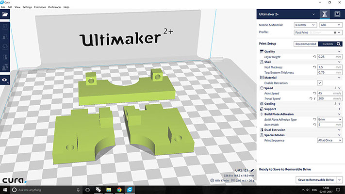 The base of the extruder is designed in such a way that, it becomes most important member and holds all the other members of the extruder. The images below show the process of preparing files in Rhinoceros.