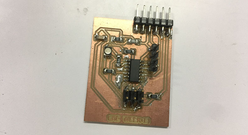 The above image shows the schematic of my board. I added extra 4 pins of RX, TX, VCC and GND for the possibility of using the circuit by networking for my final project.