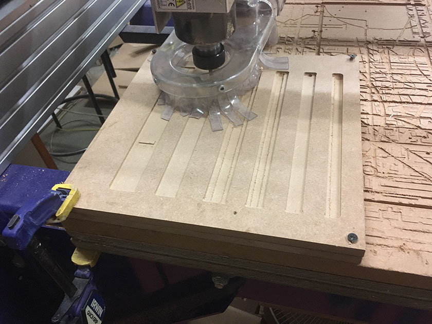 The image shows the basic line drawing of the mold which I extruded it to get the form. The thickness of the mold is 22mm. For this I would join two 11mm thick MDF board pieces to achieve the desired height while milling.