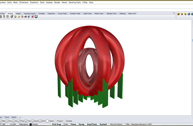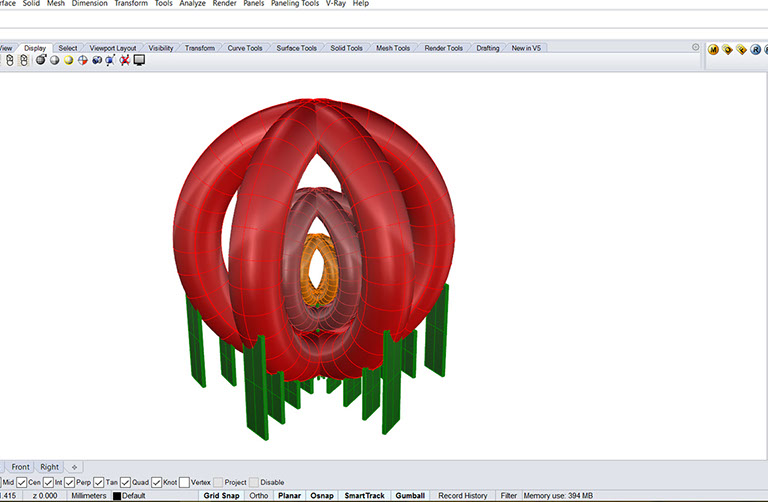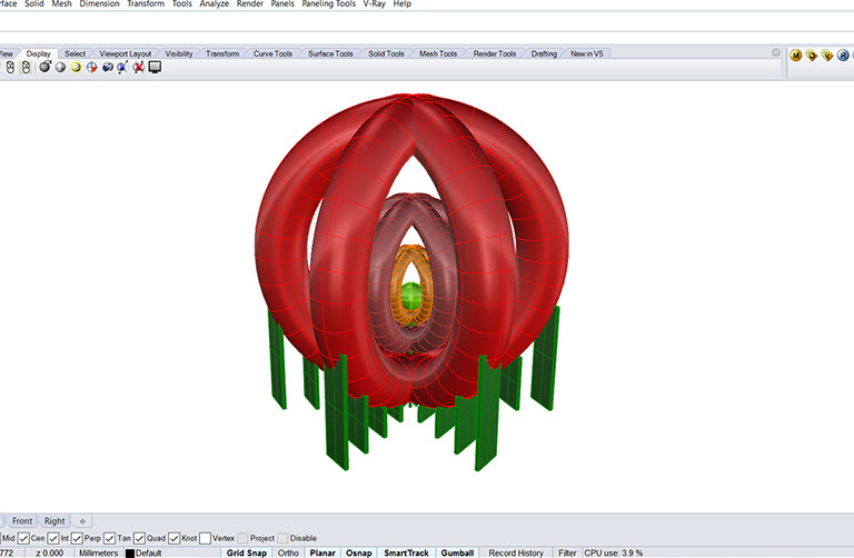 My idea was to make a complex system using spheres that can only be fabricated using a 3D printer. So to begin with I made a 2D circle then used pipe command to add volume. Next, I rotated the ring and used polar array to have more of the same rings. The result is as seen above in image.