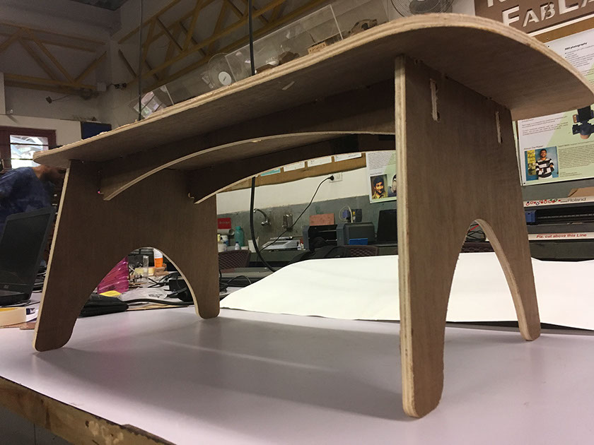 This week the task is to design an element that can be fabricated using the Shopbot. I decided to make the a laptop table that I can use while sitting on a bed using 8mm thick plywood board.