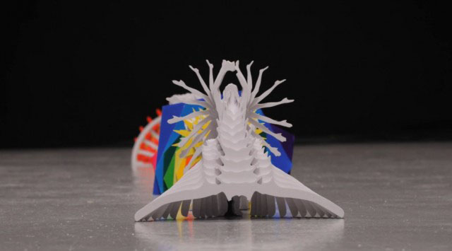 Katachi is a stop-motion video that uses more than 2000 pieces of plastic to compose it. The motion here is captured layer by layer and translated into something physical.