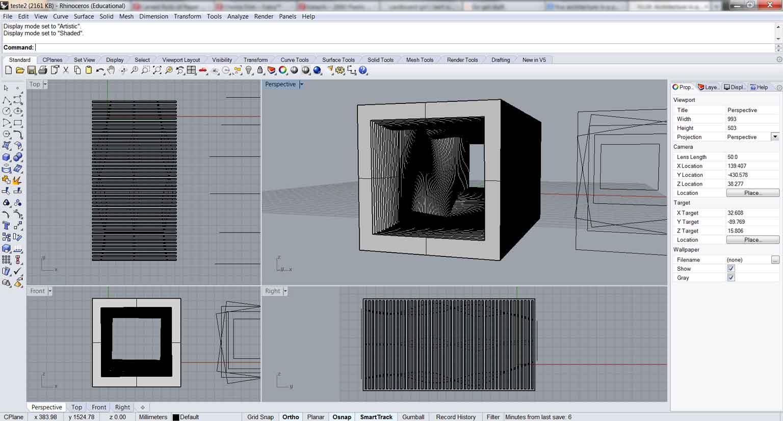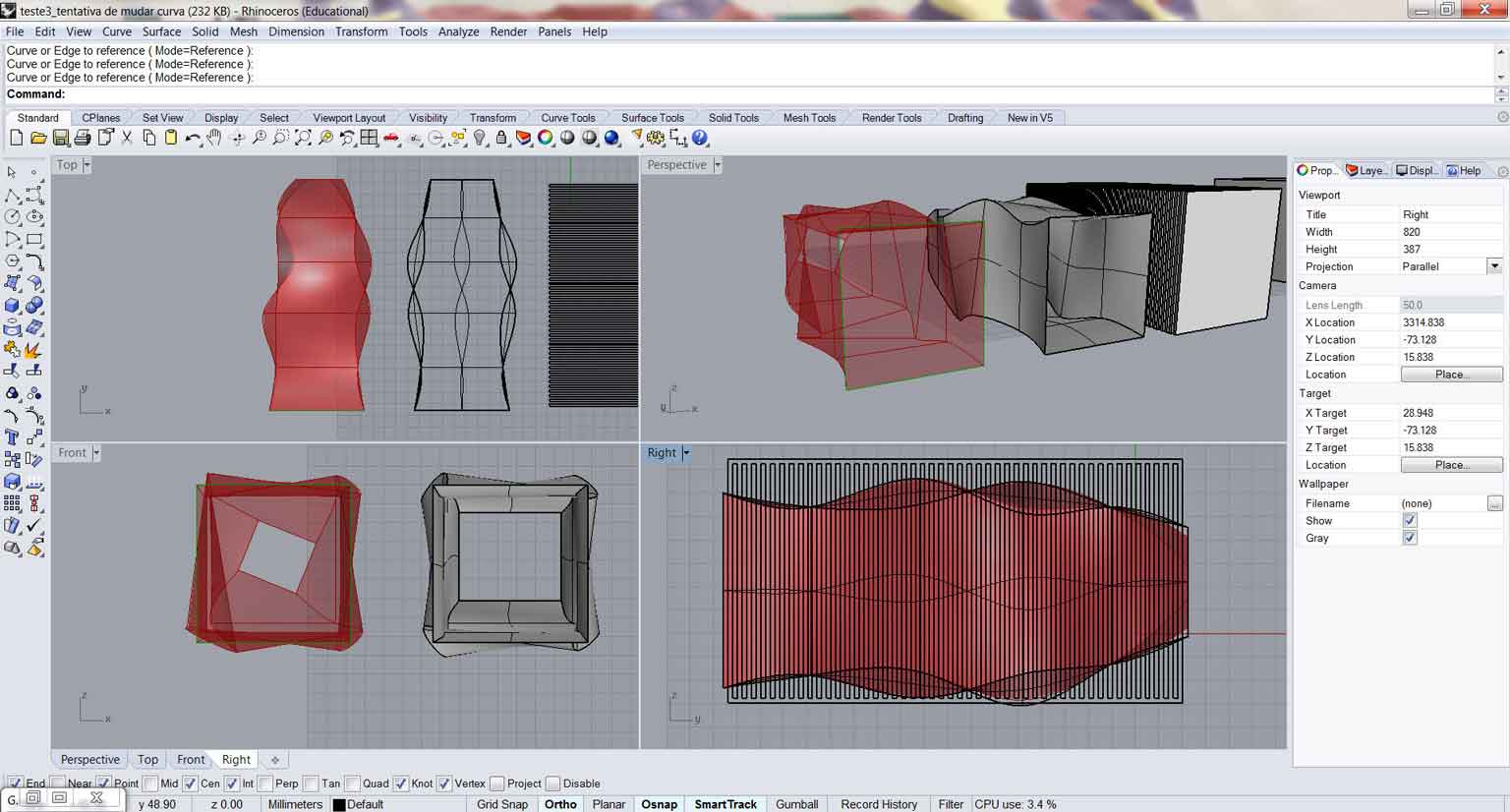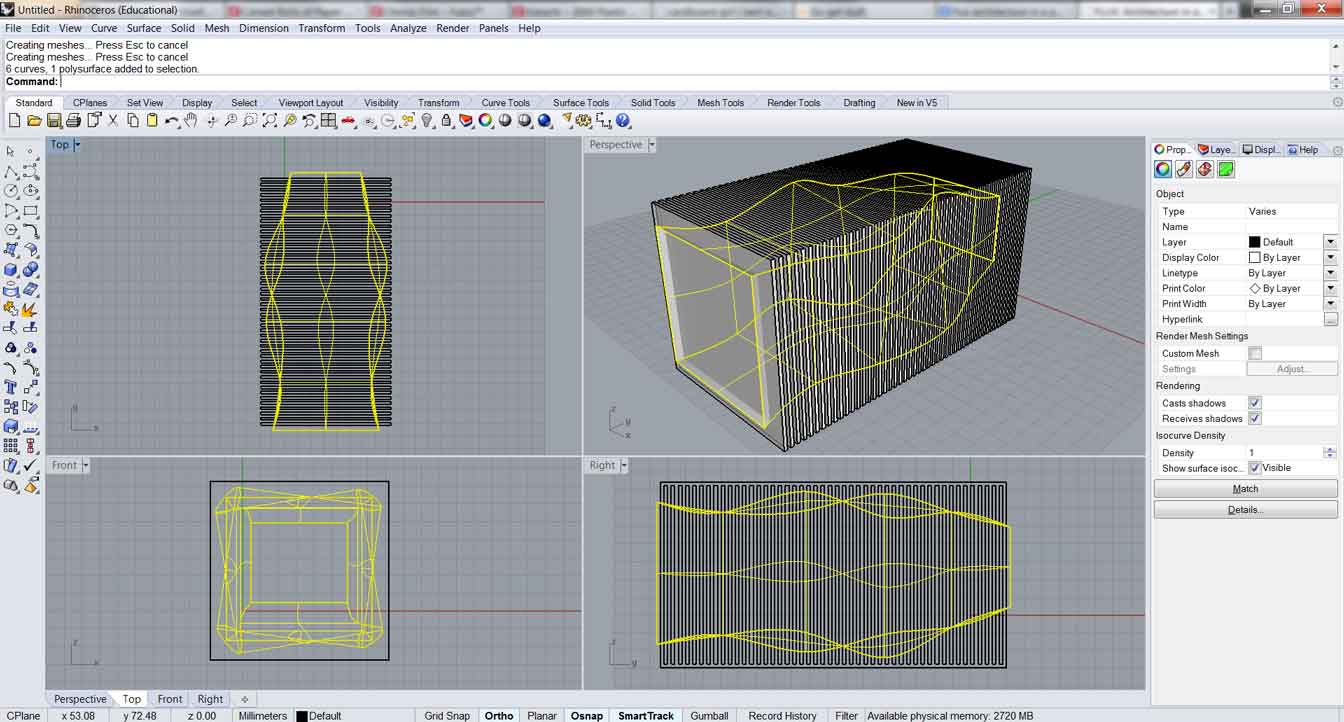 I intend to use parametric design for the next assignments. I know that doing so, I could achieve even better results and would speed up all the construction process. The application I´m more interested at the moment is the Grasshopper plugin for Rhino 3D, this generative application could automate some steps of the development of my project like adapting changes in the size of the set and fit as a whole.