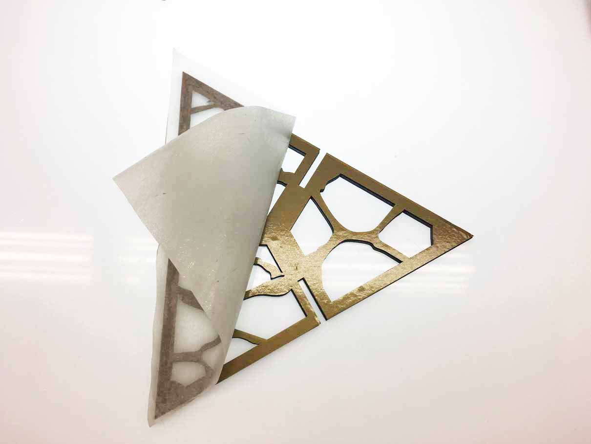 After peeling the vinyl and letting only the actual design I started the transfer process. Because it’s a very detailed, with disconnected parts I had to use a transfer tape to have the precision to glue all the design in the correct place.