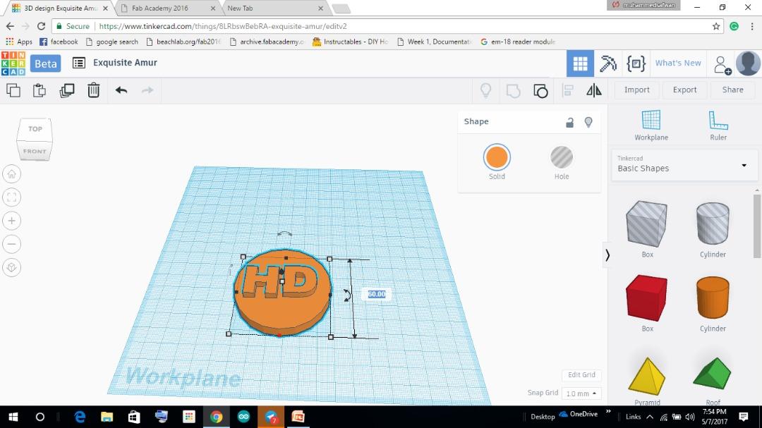 I started the design in tinkercad and luckily it happened to be easier than what I thought especially that I am a beginner with no background. The make up of the drawing is effortless and smooth. In my design I had to make the XY measurement 60 by 60 and the Z measurement is 13mm, the wax size I am using is 2mm.
