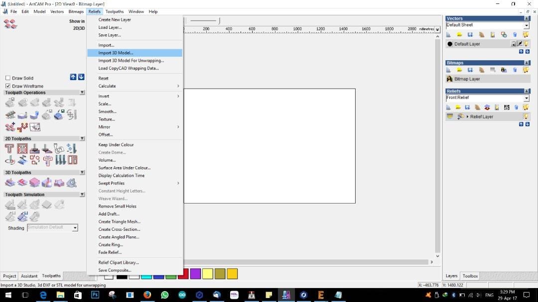 Relief → Import 3D Model → select the file → open. The following window will be open