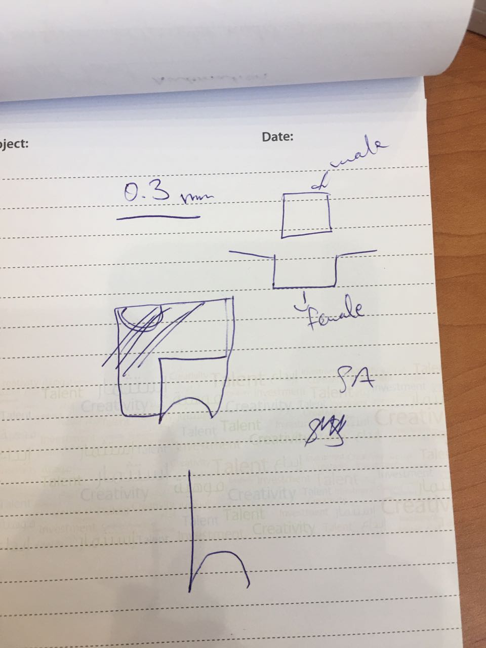 I put in consideration the thickness of the wooden board that we are working with which was 18mm, and after a few trials and errors was able to complete the design. The main issue in calculating the lengths was putting ‘Tolerance’ space in consideration.