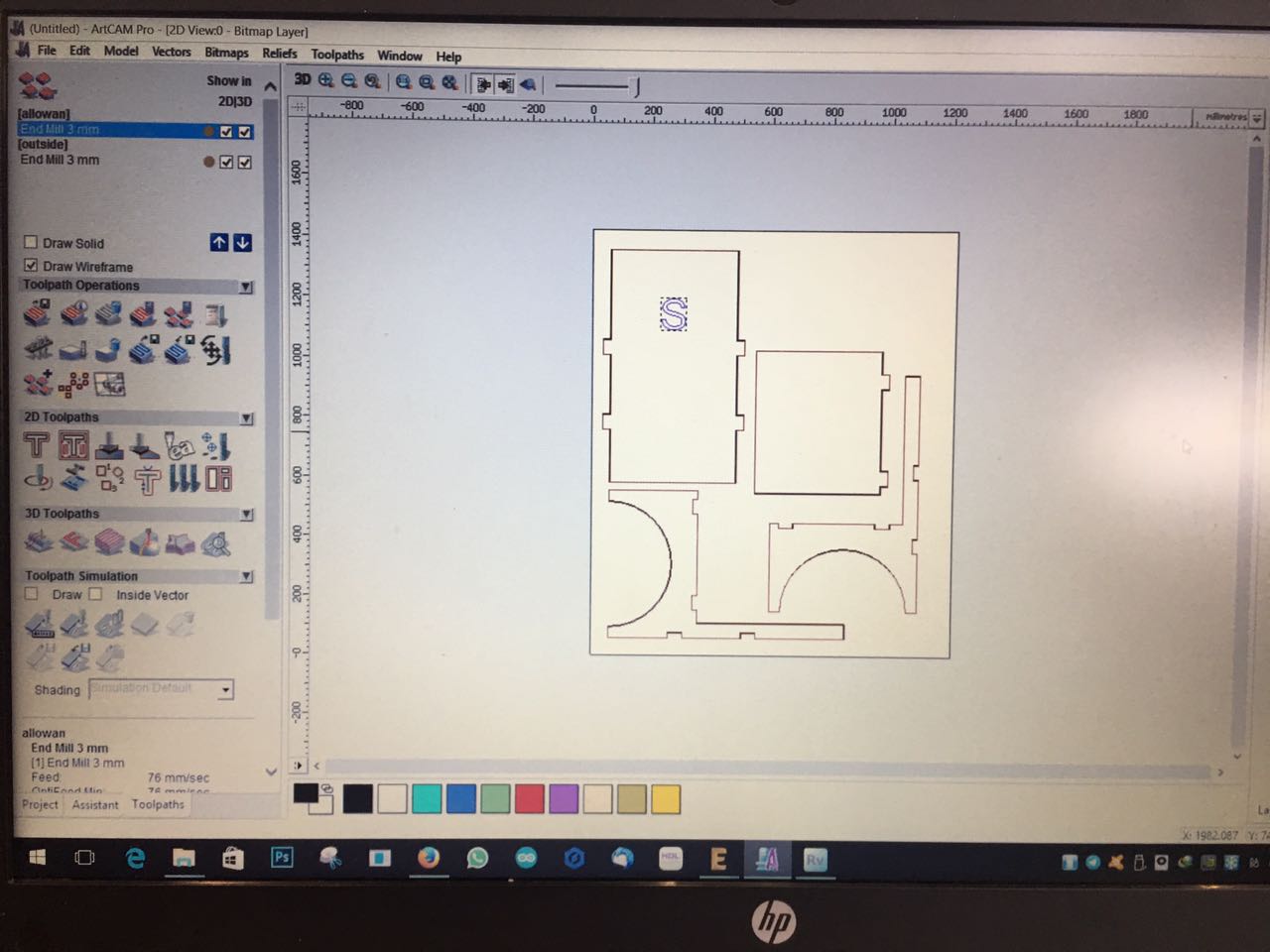 Following the design, next was the cutting process.I exported the files each one separately as DXF format and opened with ARTCAM software with a different laptop in the lab because this software (ARTCAM) is only compatible with windows and our laptops use LINUX system.