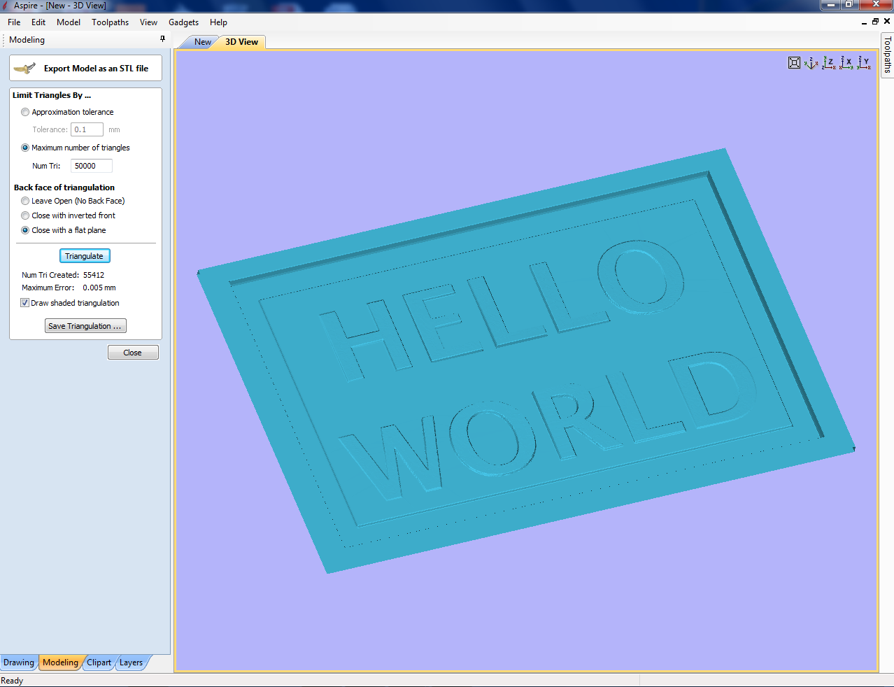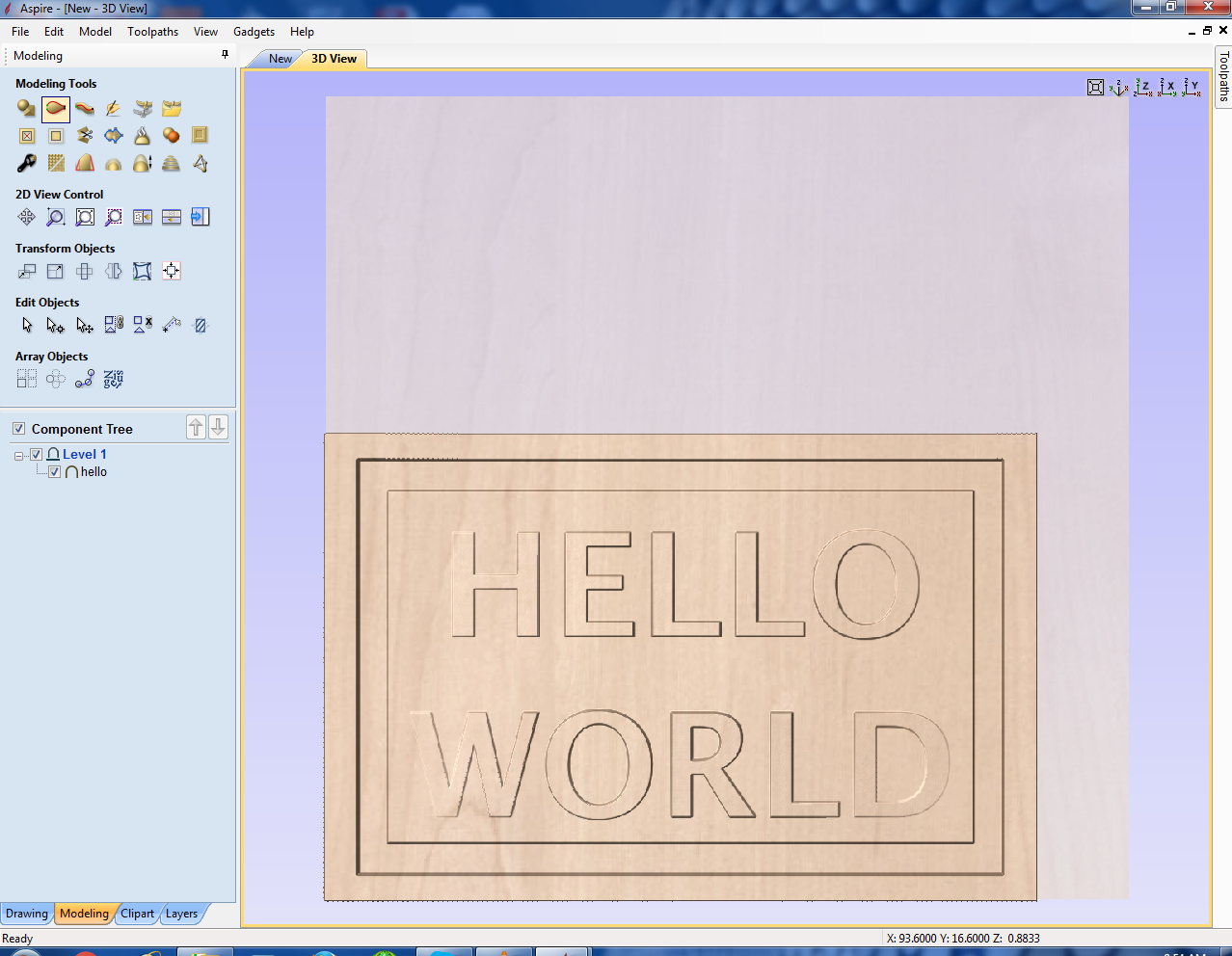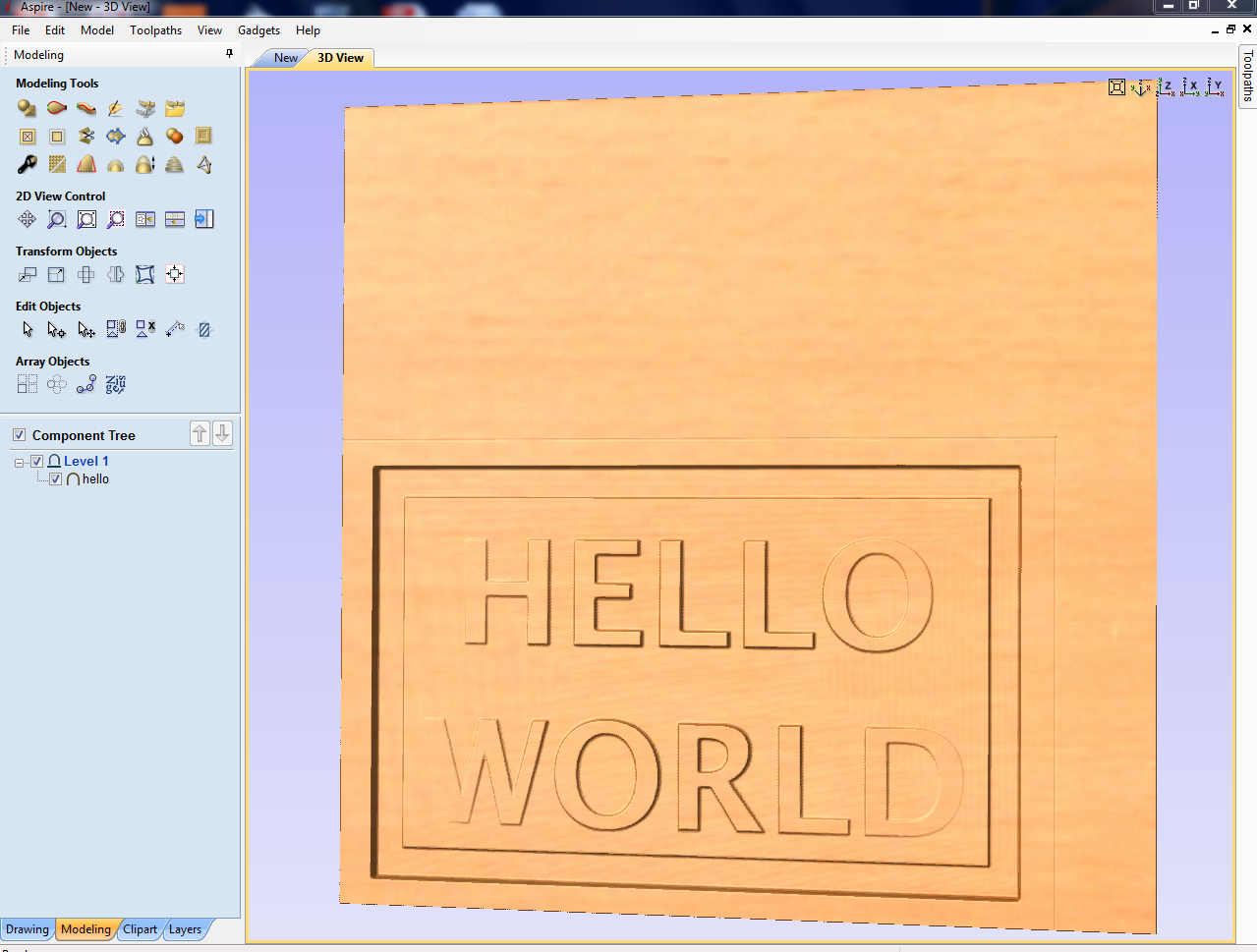 I enjoy modelling with Vectric aspire 8 since it has the capability to take a picture and transform it into a 3D model. I imported the hello world image and using modelling i was able to convert the mage into a 3D model and even alter the height and smoothness.