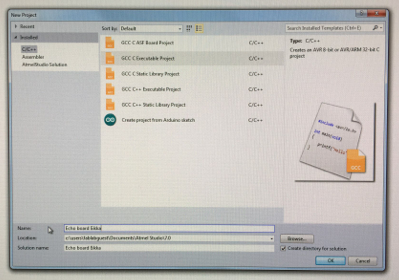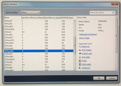 Then starting programing by learning to use Atmel Studio 7 which was installed to our lab computers. First task with it is program my hello world board with ready hello.ftdi.44.echo.c program which I loaded from this week schedule files. I need to use also FTDI cable so I get power to my hello world board because my programmer won´t offer power to board. Creating new project - New ->Project -> Executable project -> ATtiny 44A -> OK. I defined Chrystal frequency from Project - Project properties - Toolchain - Symbols and add F_CPU=2000000UL (2 MHz)