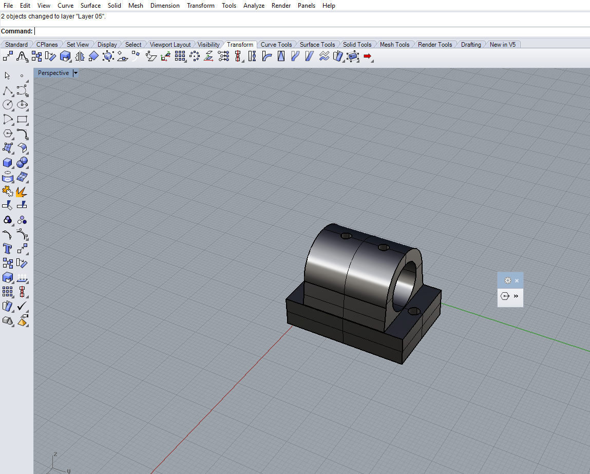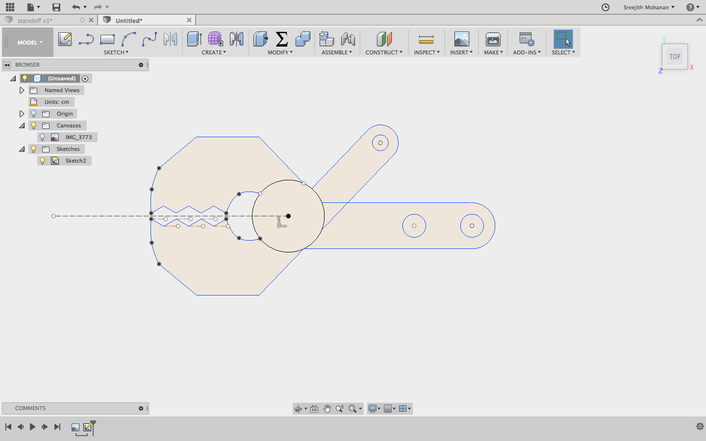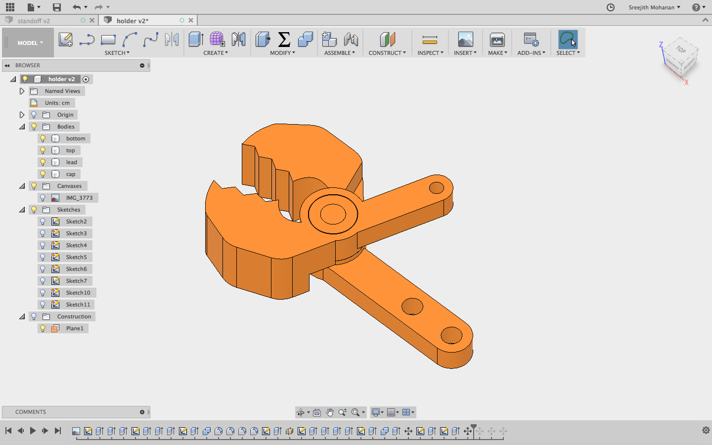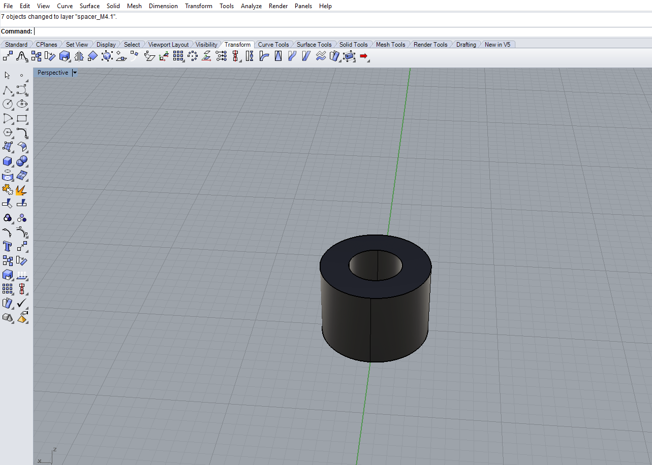 The requirement for the stand off was 4mm, so the first test pieces was designed with dimension of 4mm and fabricated in ultimaker. When we tested the 3D printed part on a M4 cheese head screw we found that the piece was really tight. Since the screw has threads on it we wanted the hole to be tight enough so that the threads will hold but loose nough so that we can turn it easily. So we changed the dimension to 4.1mm, 3D printed again and this time it worked.